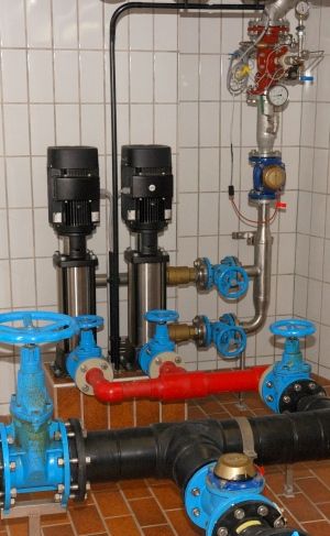 Es stehen drei Pumpen mit je 28 m³/h und 9,2 kW zum Hochpumpen des Wassers zum Hochbehälter